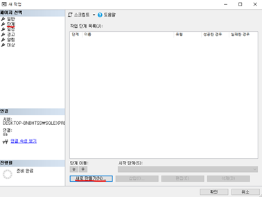 이름 입력 – 범주 [데이터베이스 유지 관리] - [단계] 탭에서 [새로 만들기]