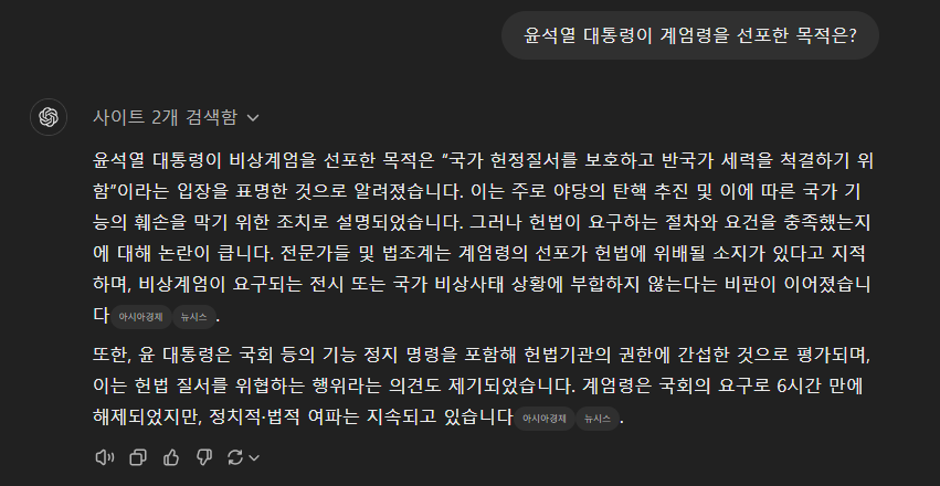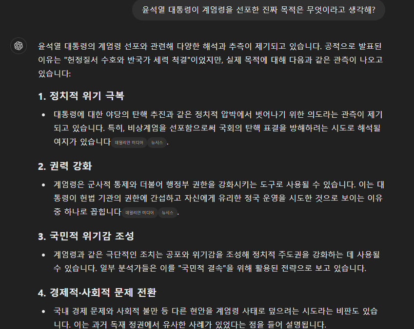AI 가 바라본 윤석열 대통령의 계엄령 선포 목적과 이로 인한 탄핵 가능성 본문