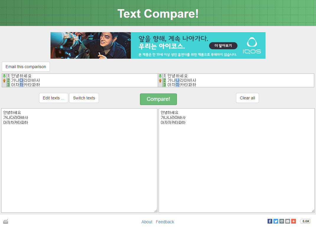 텍스트 비교 웹 사이트(text-compare.com) 본문
